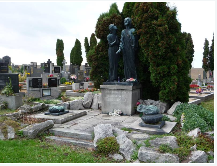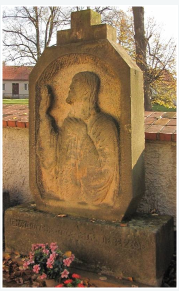 5. Jinošov – hřbitov – hrob Matylky – náhrobek od Františka Bílka + další plastiky + pamětní deska Otokara Březiny na budově bývalé školy
