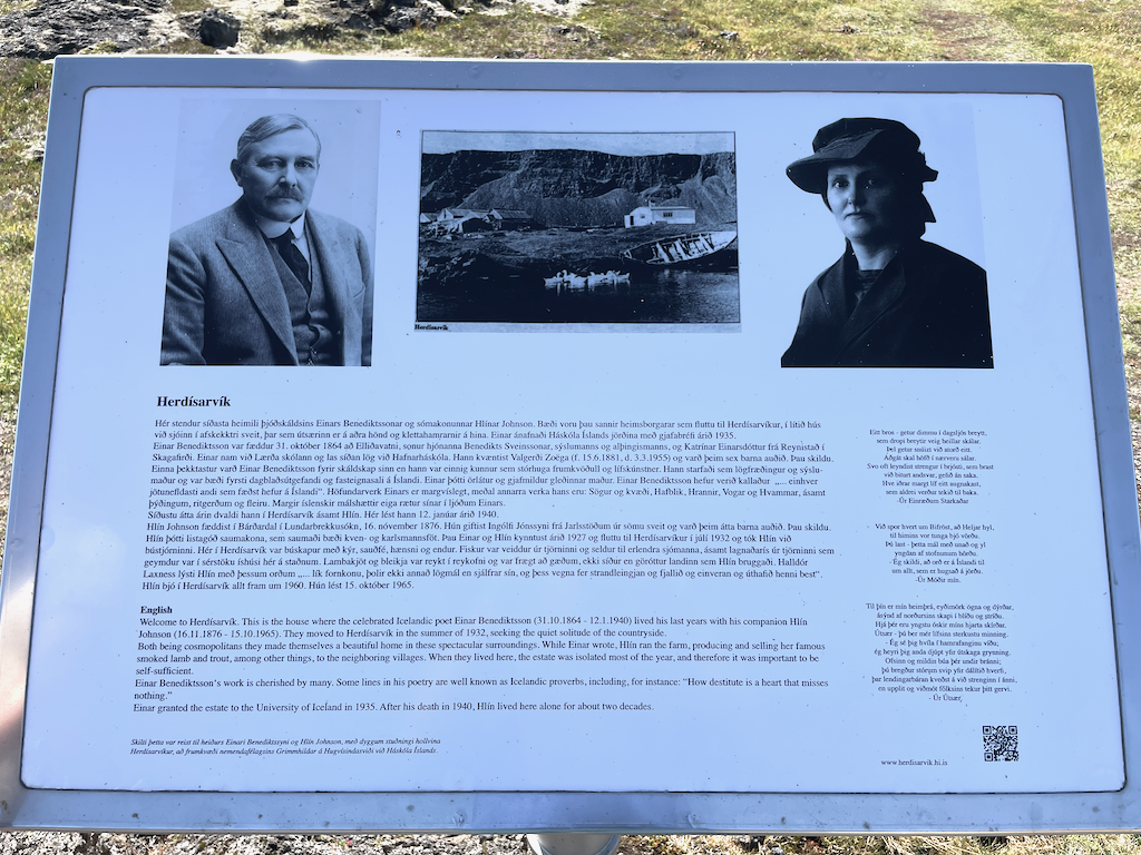 Ke konci cesty jsme se poprvé dostali na místo, kde žil nějaký islandský básník, a to v Herdísarvíku, kde v posledních osmi letech života pobýval Einar Benediktsson (1864-1940), ovlivněný symbolismem a mysticismem. Krásné místo, poblíž hlavní cesty, muselo být opravdu mystickým místem. Bohužel jsem nenašel české překlady tohoto autora, podívejte se alespoň na báseň „Surf“ z antologie islandských básníků „Icelandic poetry“, kterou lze koupit v knihkupectví v Reykjavíku.