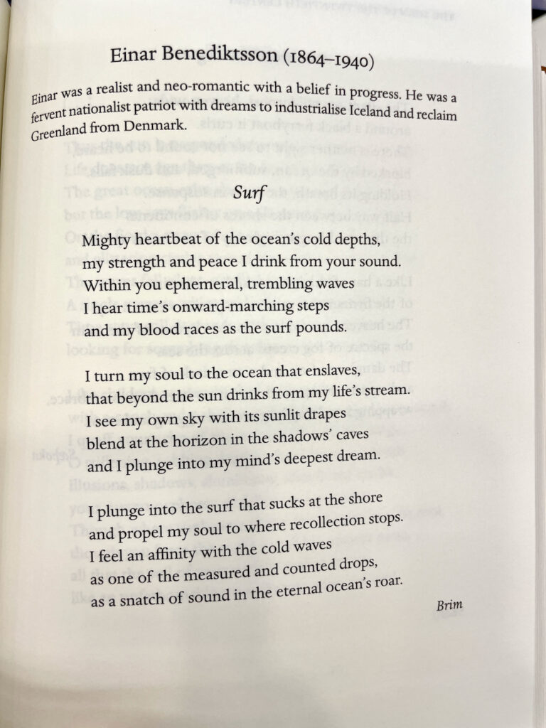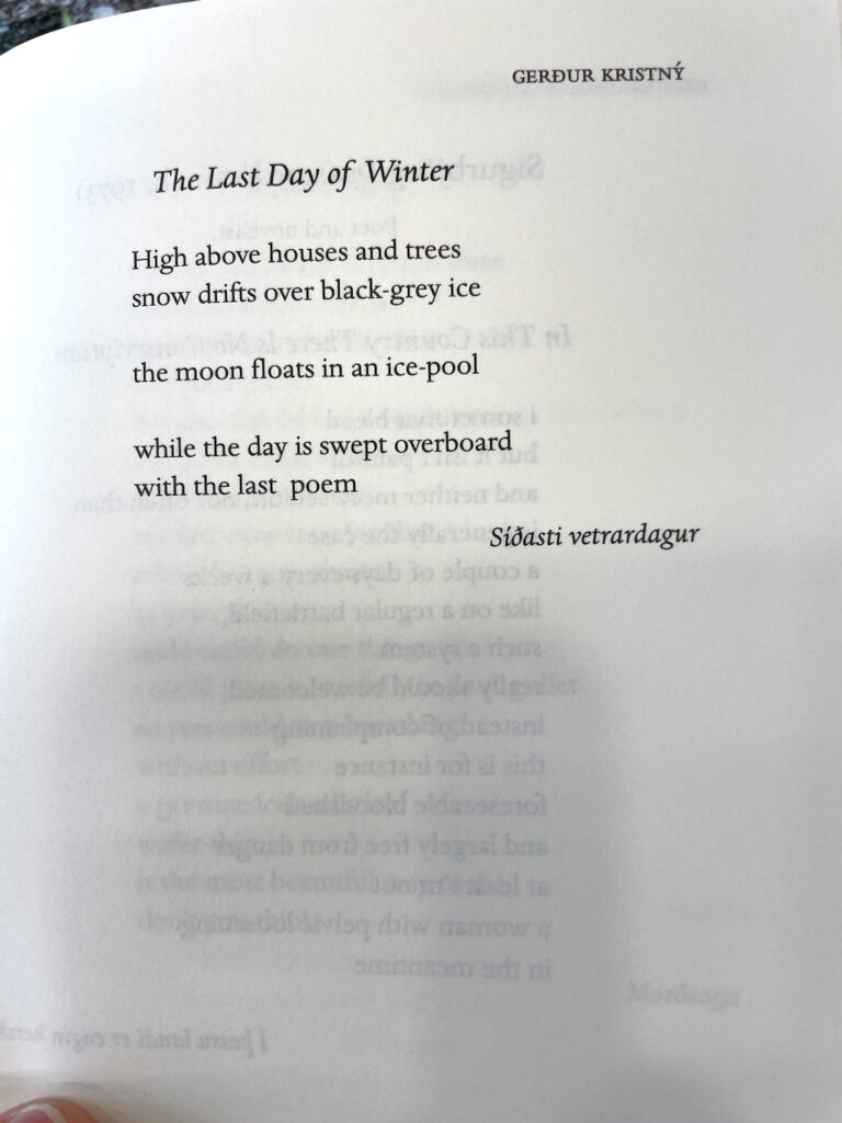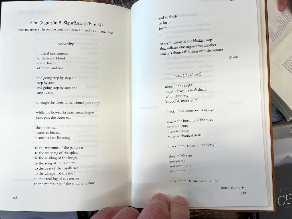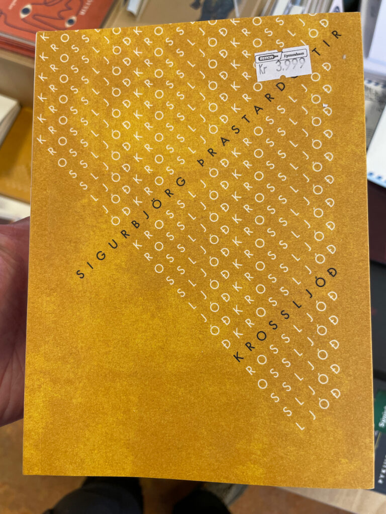 V hlavním městě jsem se snažil najít obchod s výběrem islandské poezie. Mají nějaké islandské autory v anglických překladech, jednou jsem našel i koutek s básníky, ale jen v islandštině, takže pokud vás zajímá historie islandské poezie a stačí vám anglické překlady, najdete je právě v krásném výboru „Icelandic poetry“.