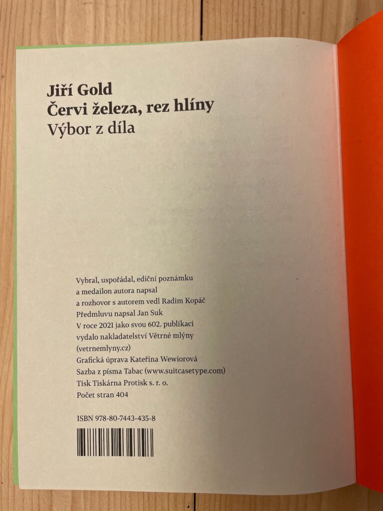 Básně v tomto týdnu od českého básníka Jiřího Golda jsem vybral z výboru „Červi železa, rez hlíny„, který vyšel v roce 2021 v nakladatelství Větrné mlýny.