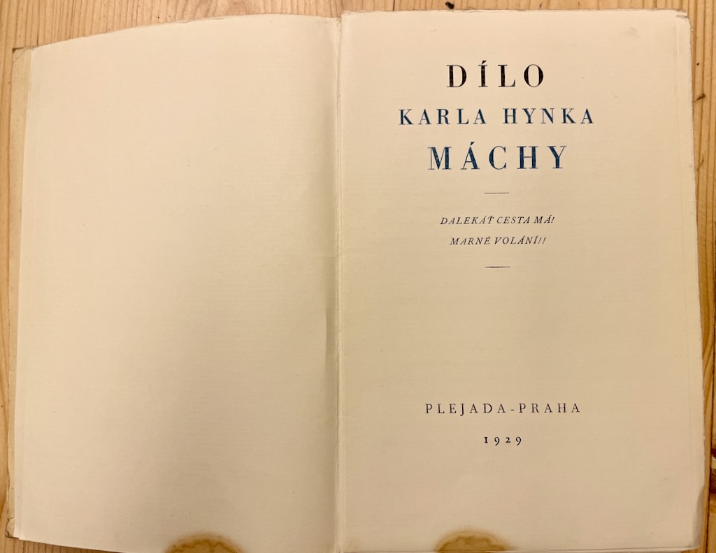 Básně v tomto týdnu od Karla Hynka Máchy jsem vybral z výboru Dílo Karla Hynka Máchy, vyšlo v nakladatelství Plejada v roce 1929, uspořádal Albert Vyskočil.