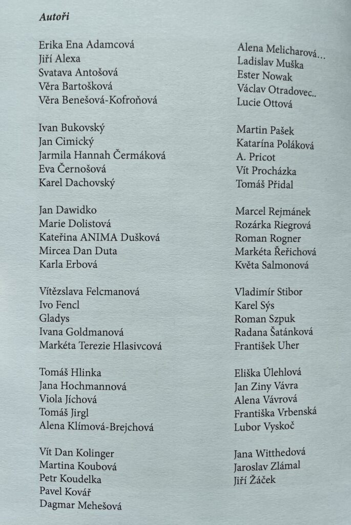 Kniha obsahuje básně 58 autorů a fotografie Jindřicha Štreita.